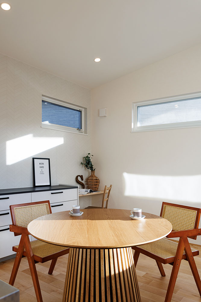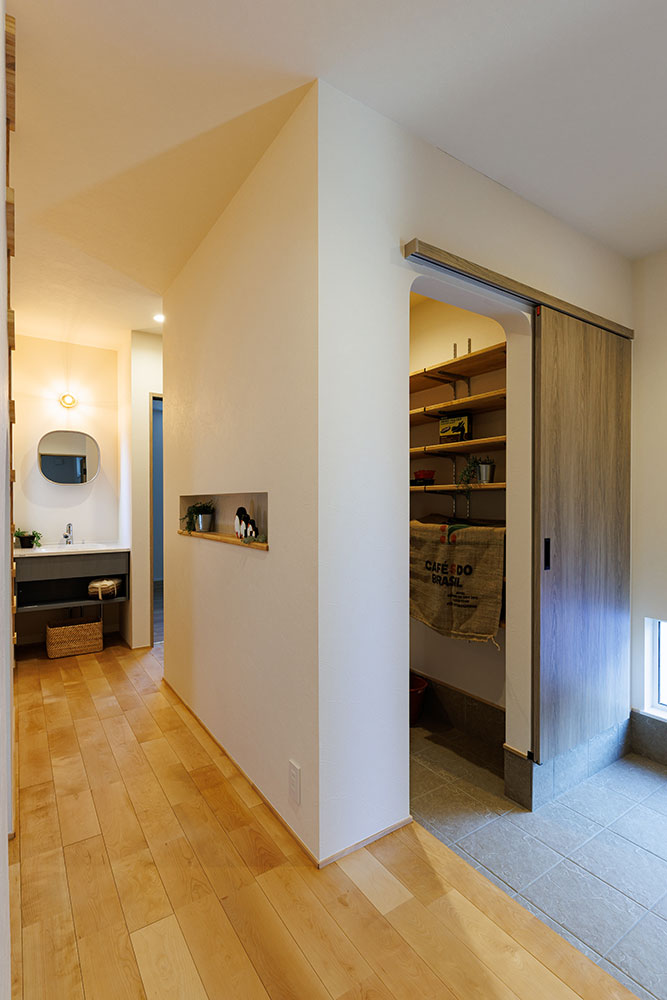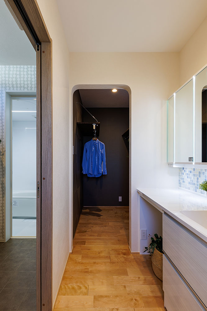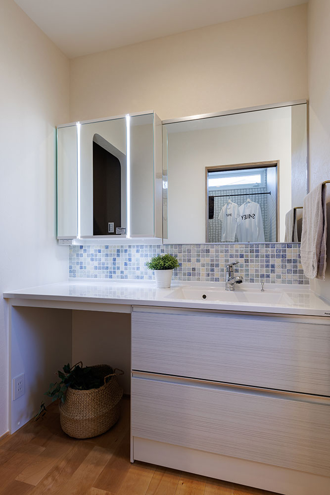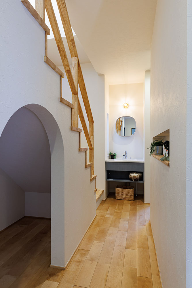 2階リビングのこのお家は1階にも洗面所を設け「ただいま」からの手洗い→2階へと帰宅動線もしっかり考えました。