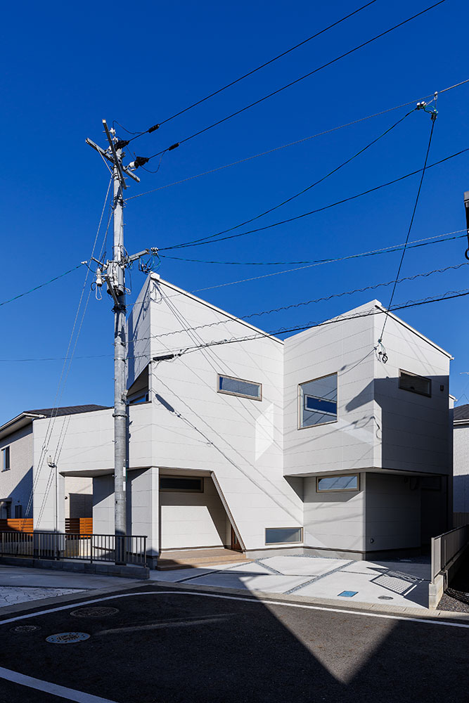 びわこが望めるルーフバルコニーのお家個性的な立体フォルムのシャープなデザインにしました。