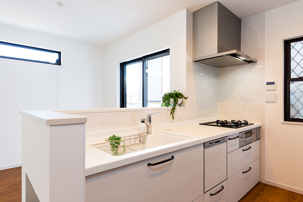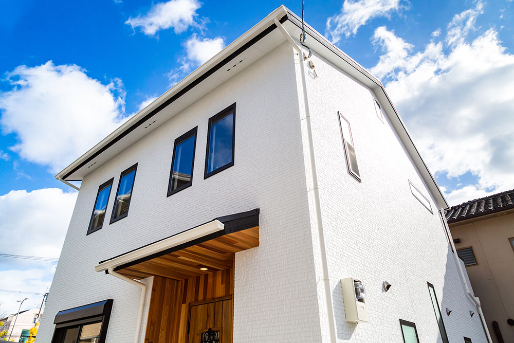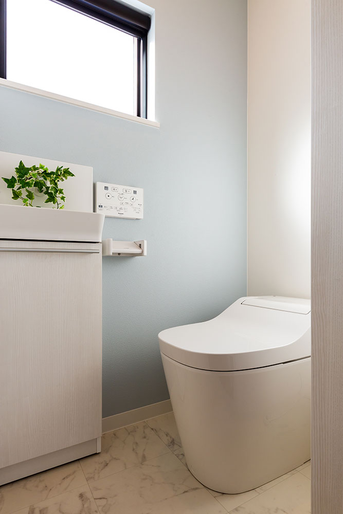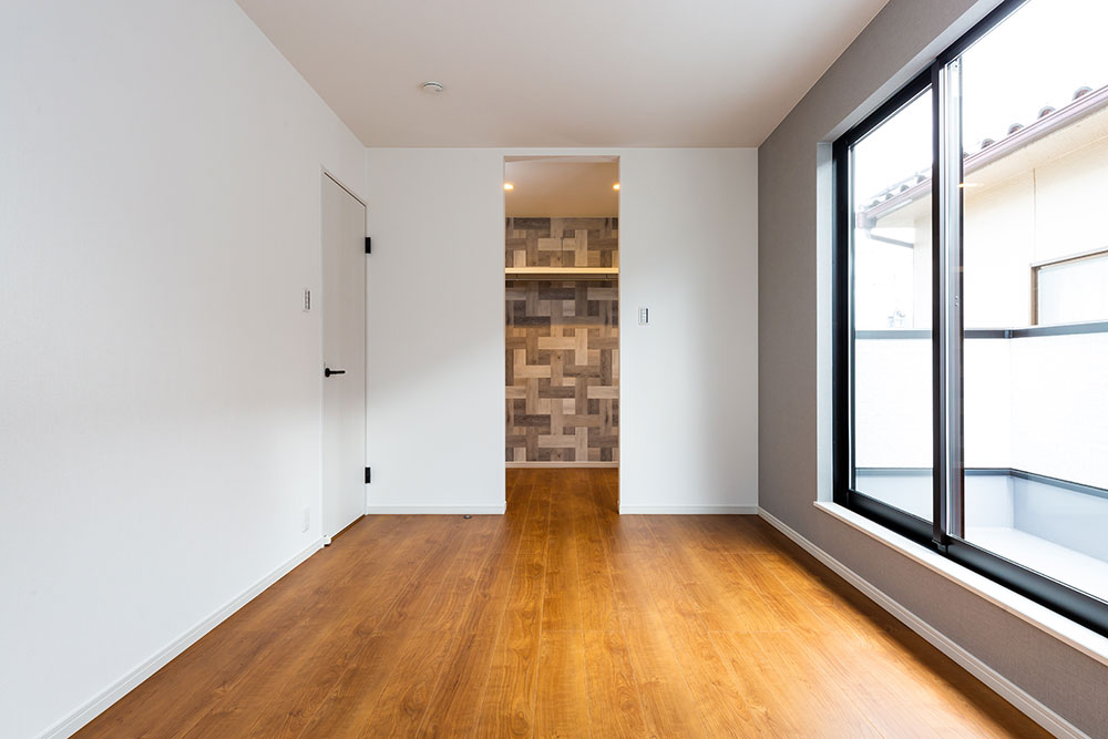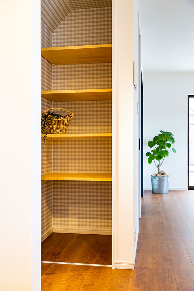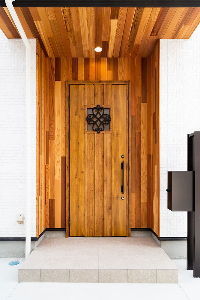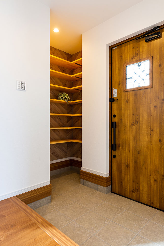 ネイビーのドアがあるお家子供たちが自由な発想を持ちのびのび成長できるお家にしました。子ども部屋はまるで大きな遊び場のように楽しめるロフト付きです。ロフトを設けることにより、お子様が小さな時はあそび場として、大きくなると収納スペースとして利用できるよう設計しています。将来2つの部屋に分けることも想定しています。白で統一されたリビングに映えるネイビーのドアとキッチンの壁がとても素敵です。
