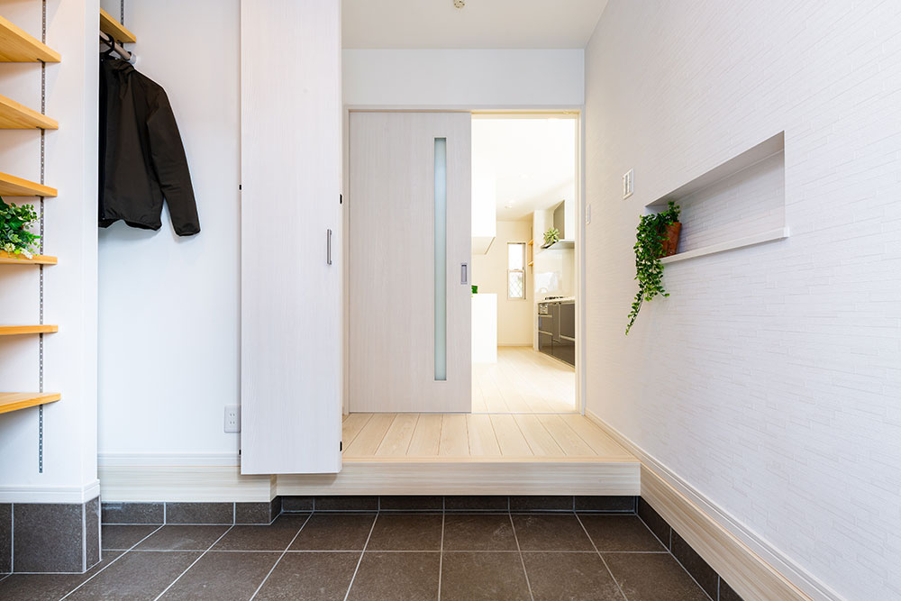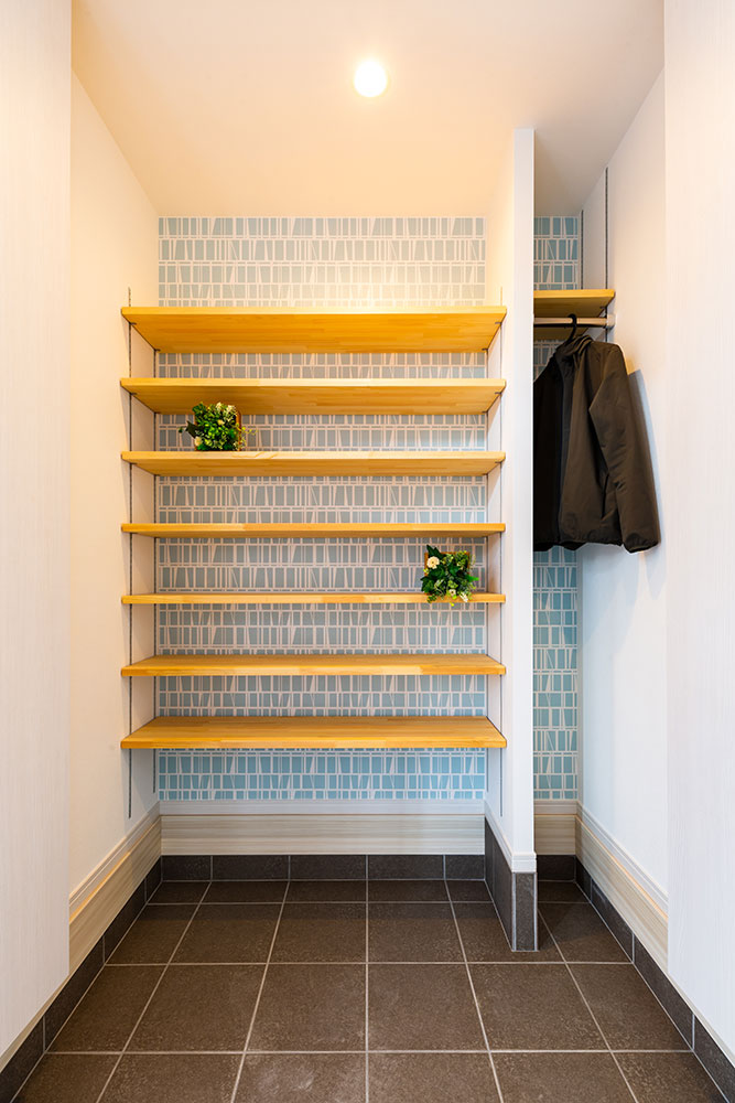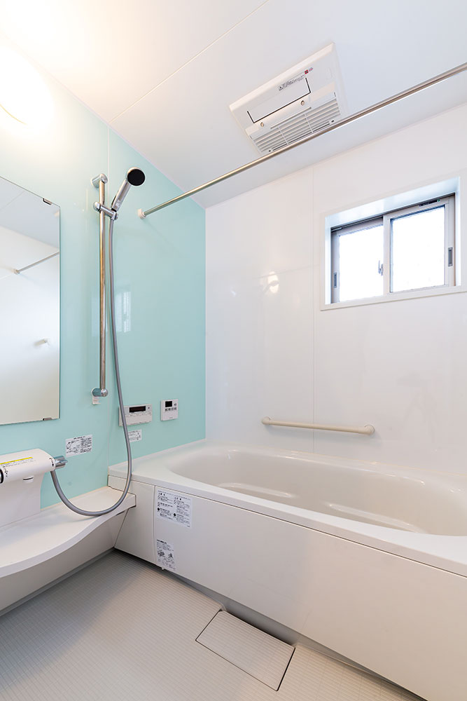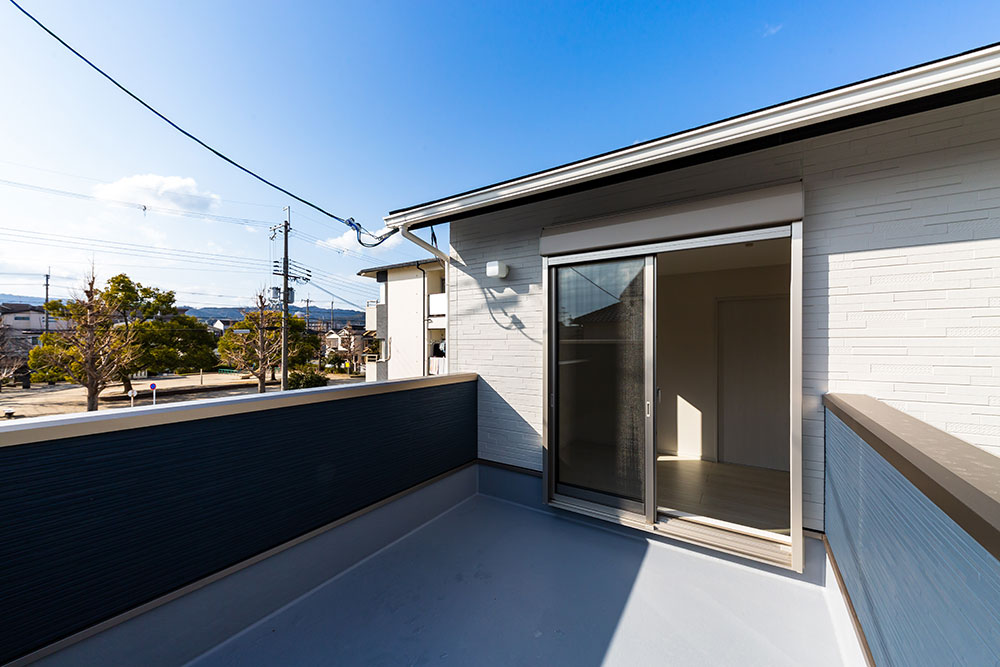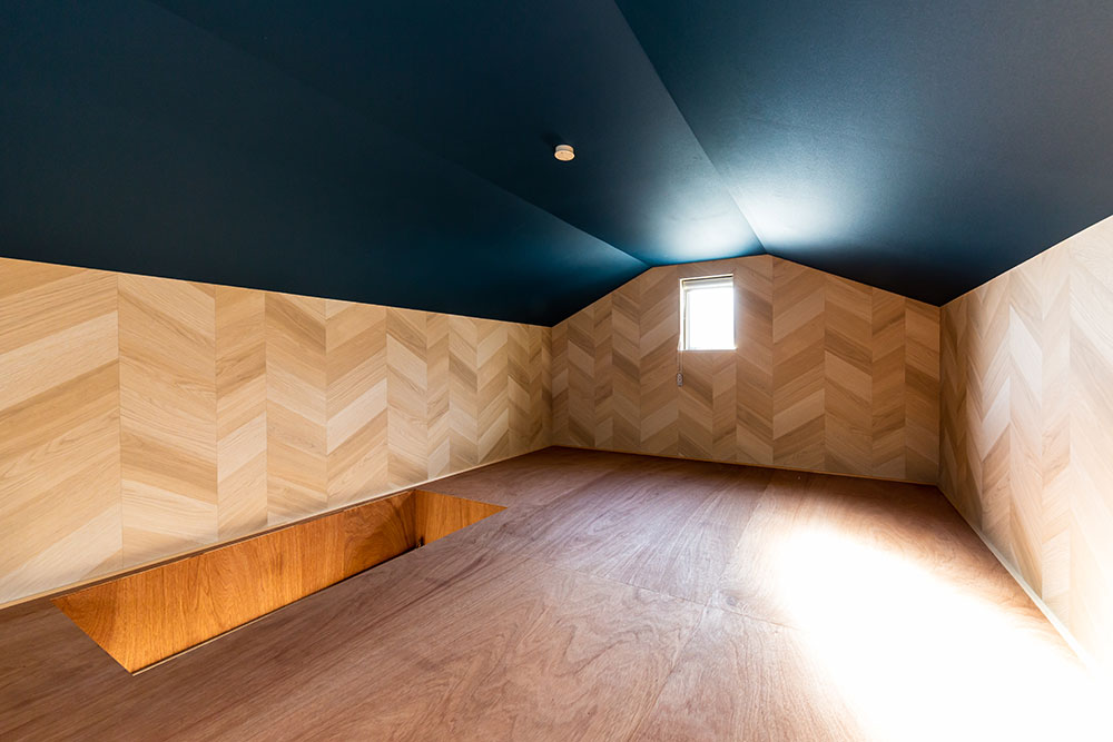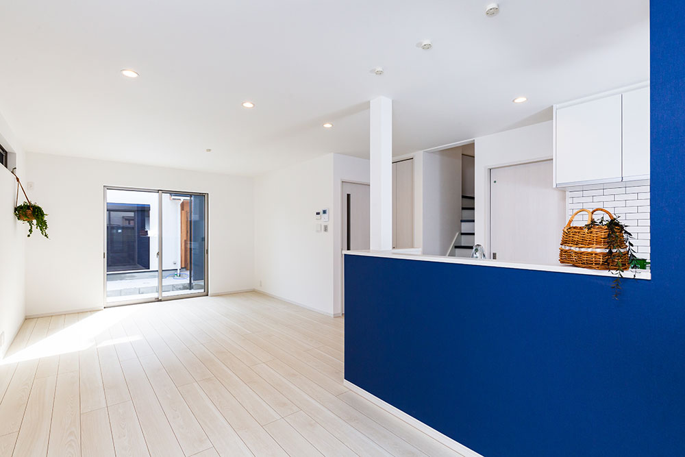 ルーフバルコニーのお家ピンクやグリーン等部屋ごとに異なる壁紙やブルーグレーのドア、グリーンのシンクと細部にまでこだわったとてもキュートなお家です。気分もポップに明るくなります。お天気のいい日は広いルーフバルコニーでのんびりとすることができ、お家時間を楽しむことができます。