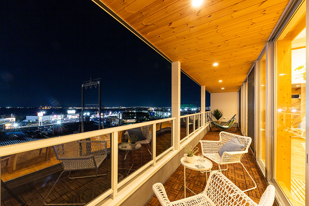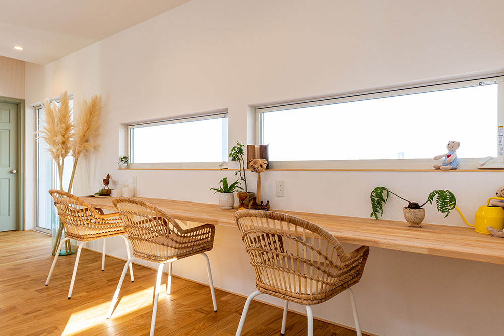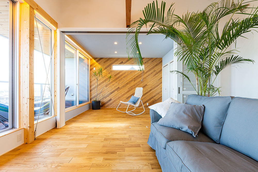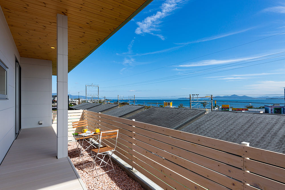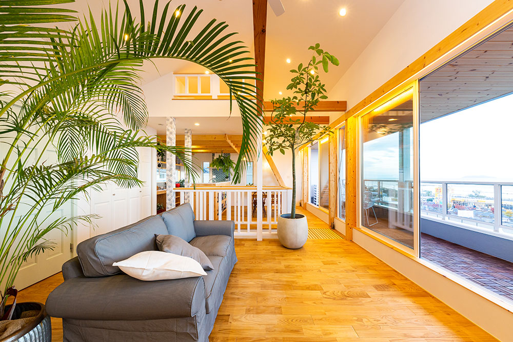 びわフォルニアなお家びわこの眺望を最大限に引き出したリゾート感いっぱいのコンセプトハウスです。とても開放的な空間に木のぬくもりを感じられる素敵な仕上がりです。これぞ自由設計!という良さをたっぷりと感じていただけます。広い土間スペースや眺望の良いバルコニー、オリジナルのキッチン等いいな!がいっぱい詰まったお家です。