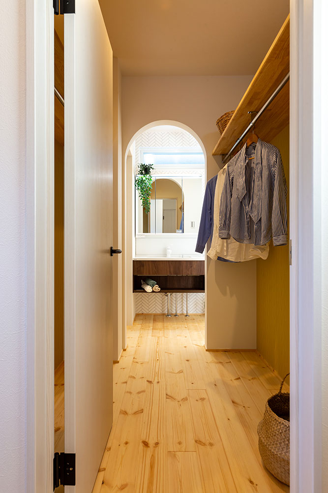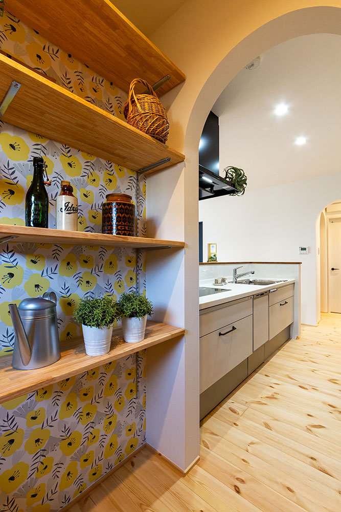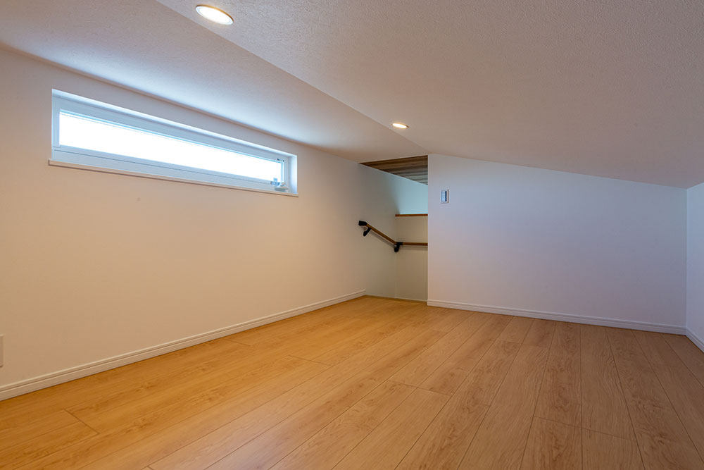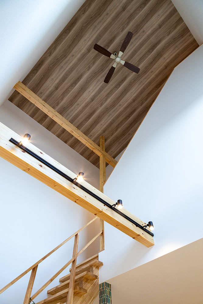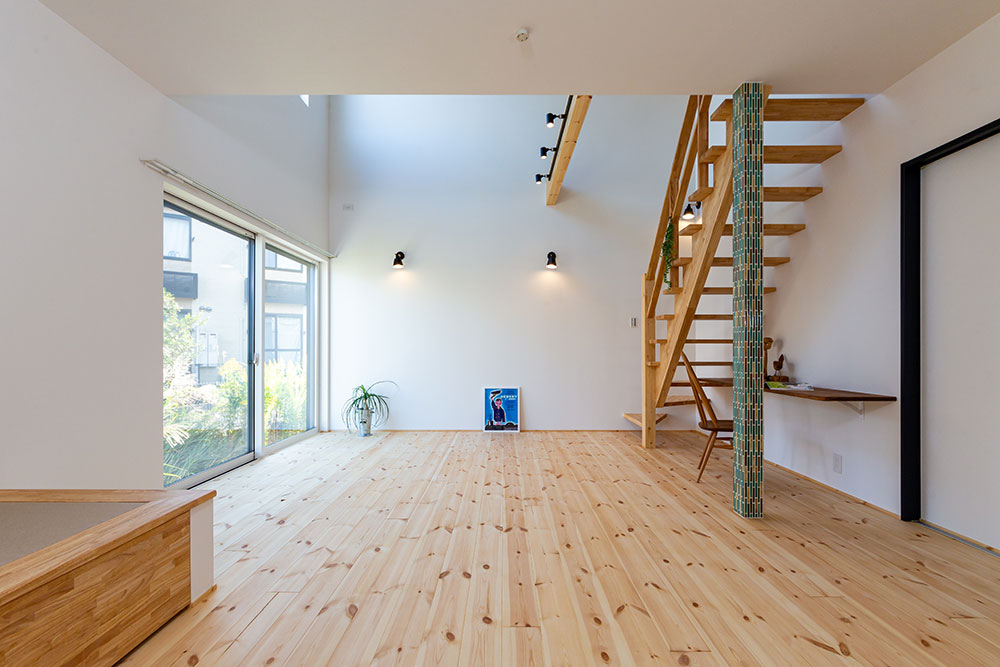 ロフトのあるお家吹抜けのある明るいリビングは無垢の床が優しい雰囲気にしてくれます。小上がりのタタミスペースやスタディスペース、パントリーを兼ねた奥さま部屋♥ご主人の趣味部屋にもなるロフトは収納力たっぷりです。玄関からの動線やキッチンを中心にした家事動線にもこだわりました。建物正面に大きなFIX窓を2ヶ所設けることで自然光がたっぷり入るデザイン性と実用性を兼ね備えたお家になりました。