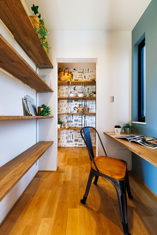 パントリーの横にはワークスペースを設けて籠れる空間を作りました。