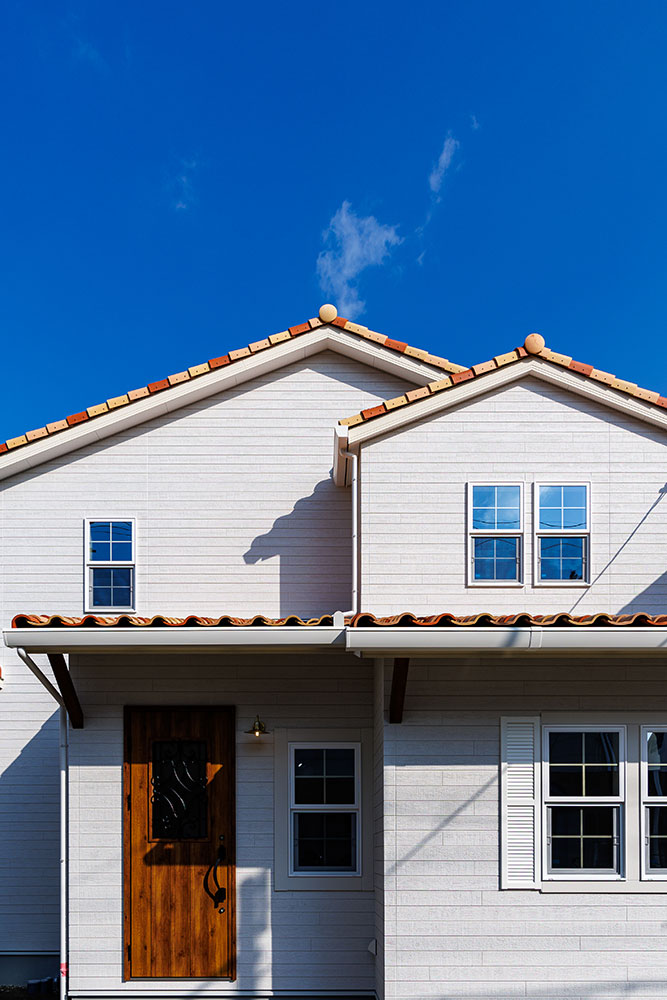 テラコッタ屋根のかわいいお家まるで子どもの頃遊んでいたおもちゃのお家のようなかわいい外観。特に、テラコッタの洋瓦が目をひきます。